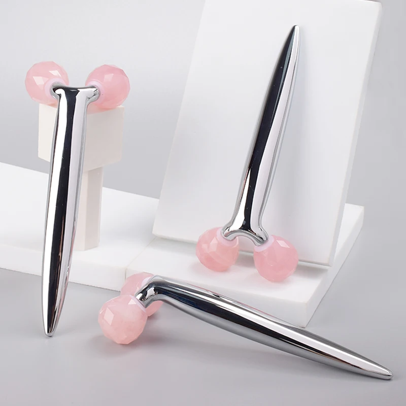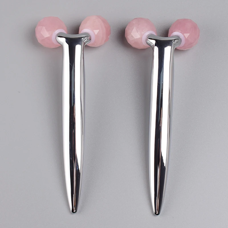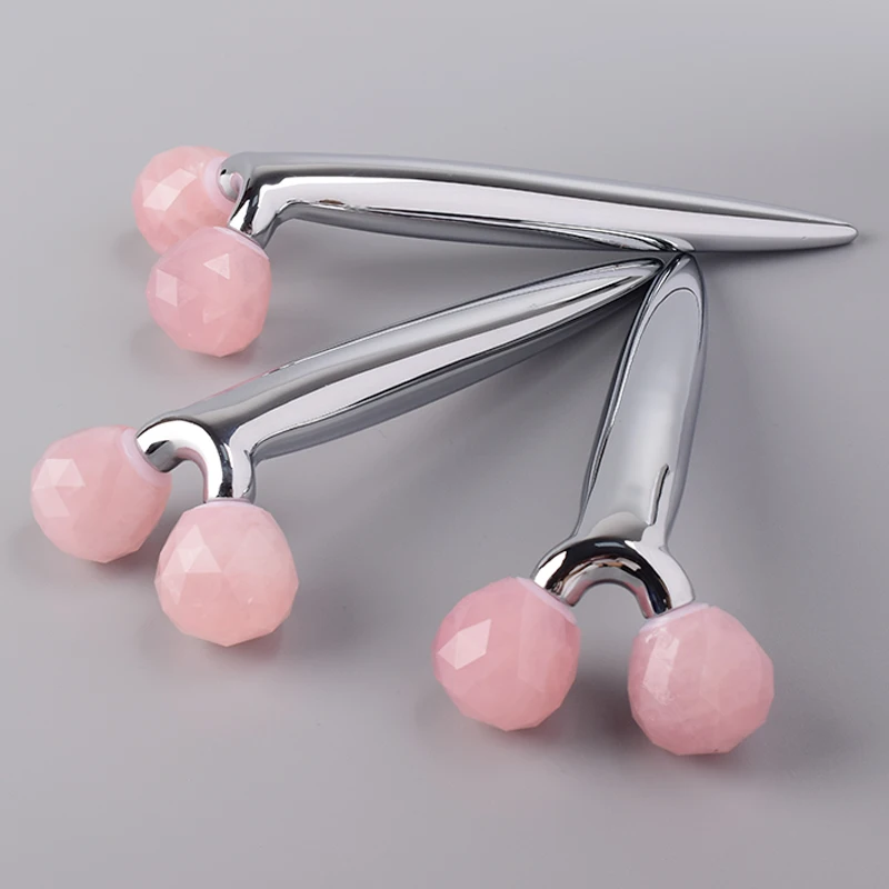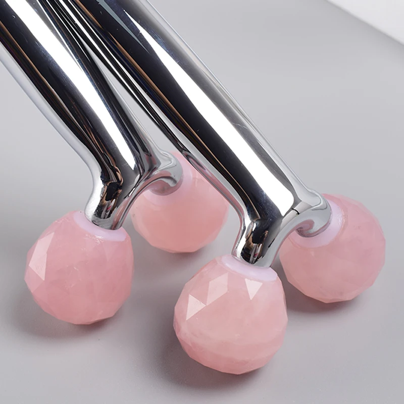 3D multi-flour Rose Quartz Face Roller Stainless Steel Handle Massager Face lift And Firming Skin Healing Massage Body Back& Arm